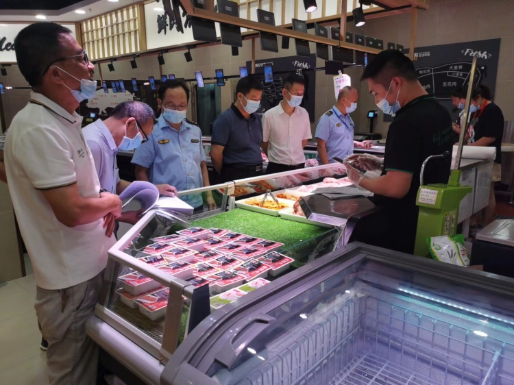 在汨罗市世纪华联超市,督导组一行重点查看了是否按要求落实公共场所消毒、进店人员查验、冷链食品风险排查和核酸检测等防控措施。同时还查看了果蔬农残检验报告、各类食品索票索证等情况。