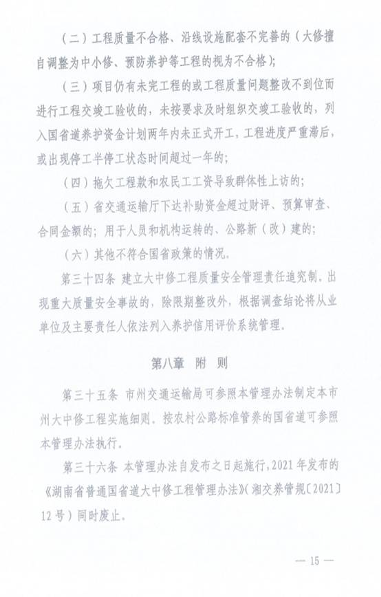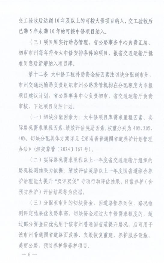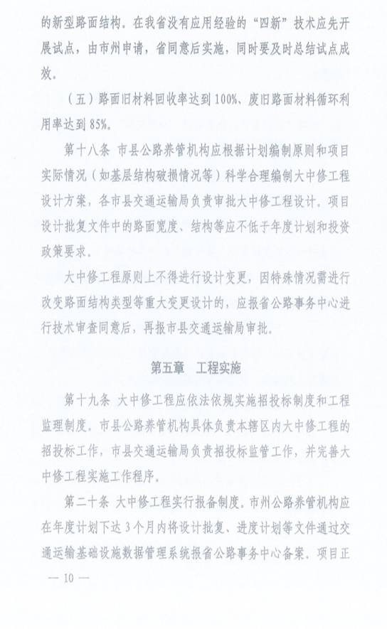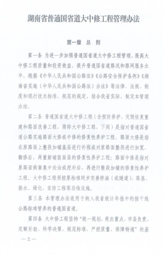 关于印发《湖南省普通国省道大中修工程管理办法》的通知