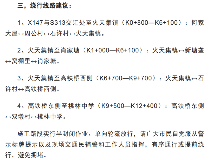 关于对S313汨罗大荆镇至桃林寺镇公路全线路面改善工程施工路段实施交通管制的通告