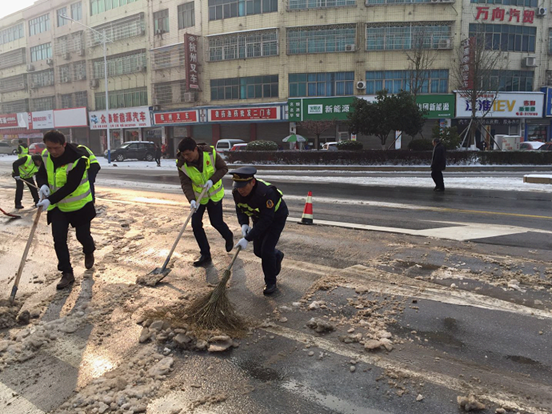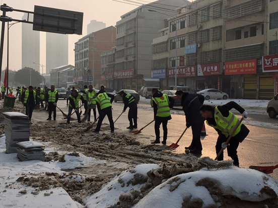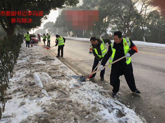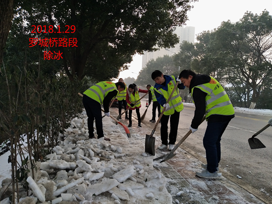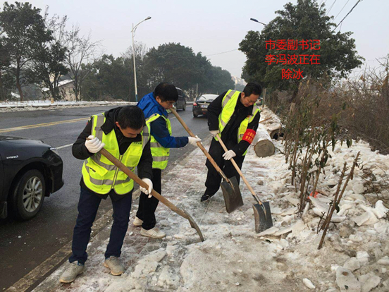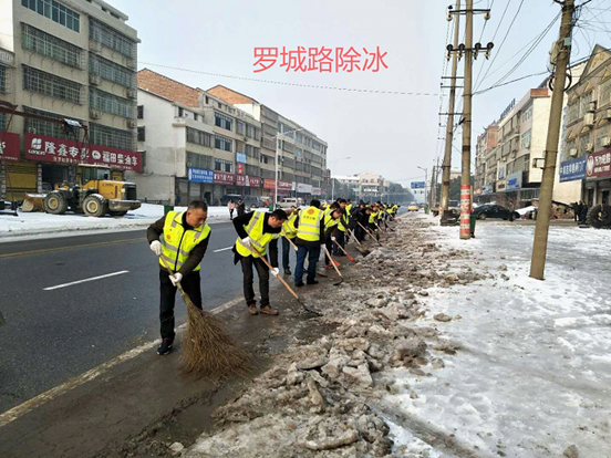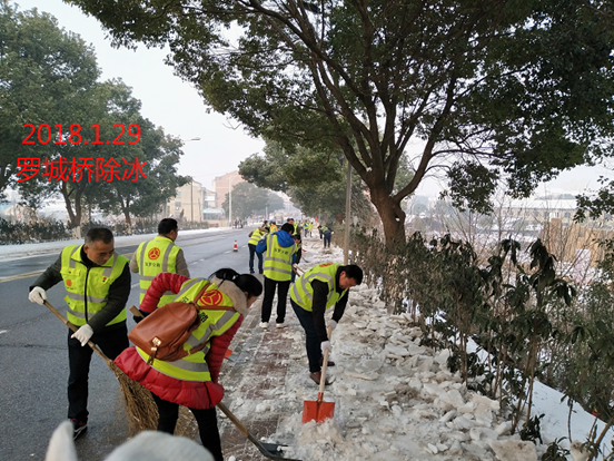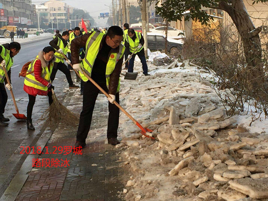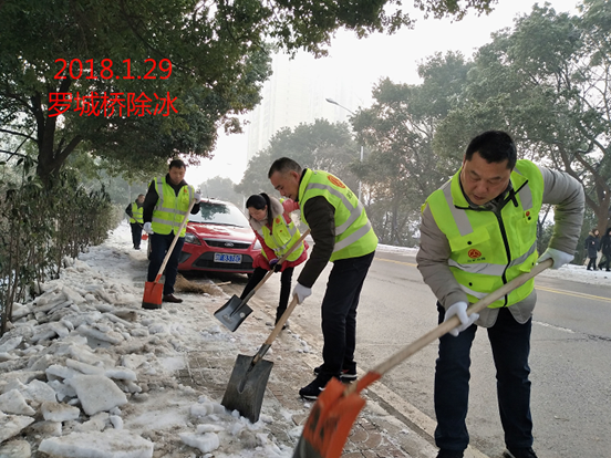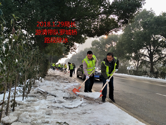 2018年元月29日上午,公路局近50名同志来到罗城桥路段开展除冰活动,此次除冰范围在罗城桥至廖家山北侧路面及人行道。大家7:50就全部到达现场,参与除冰的同志身着公路标志服,党员佩带党徵。现场锹落冰起,秩序井然。虽寒风冽冽,大家却干得热火潮天,展现了公路人良好的精神风貌。市委副书记李冯波也穿上了公路标志服,全程参与除冰行动中,至10:30分全部清扫完毕。