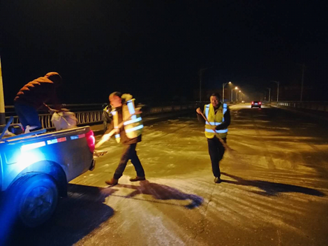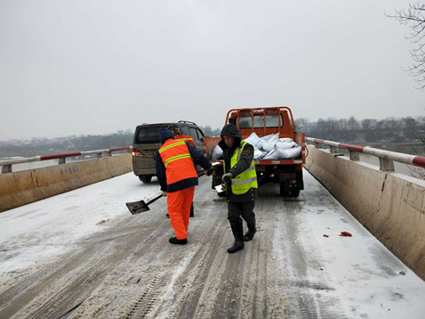 为保证汨罗境内干线公路的畅通,汨罗公路局立即启动抗冰应急预案,积极参与到汨罗抗冰雪保畅通交通大会战中。路政、公路站、养护施工队3个应急小分队共40余人在25日晚通宵对重点路段、6座大桥抛撒融雪剂和设置标志牌,26日局机关抢修分队又全线进行巡查,对倒伏的树木等采取人工清理,对急弯陡坡和严重结冰路面抛撒融雪剂和防滑砂,设置安全警示牌,引导过往司乘人员谨慎安全通行。冰雪无情人有情,一个通宵下来,该局人员共巡查线路80KM,沿路抛撒融雪剂20余吨,清除障碍10余处,经过通宵的努力,各大桥,各条主要线路基本实现通畅无碍。
