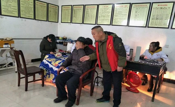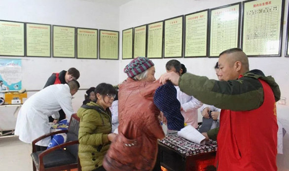 10月份,在白塘镇穆屯村,为村民及贫困户免费做健康检查,并为贫困户发放爱心物资