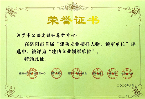 在刚刚召开的岳阳市首届建功立业榜样人物、领军单位评选大会上传出喜讯,汨罗市公路建设和养护中心荣获建功立业领军单位荣誉称号。