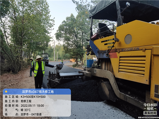 9月13日上午9时32分,县道 X047抢修工程施工人员顶着烈日、冒着酷暑,正在K8-K9路段摊铺沥青混凝土。在项目现场看到,大型摊铺机、压路机正在加紧进行沥青路面摊铺,工人们也有序地开展作业,现场一片火热景象。