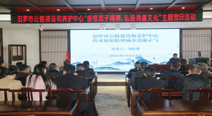 为传承优秀传统文化,接受廉政教育,洗礼净化心灵,10月24日,汨罗市公路建设和养护中心以“感悟屈子精神,弘扬清廉文化”为主题,组织全体党员、入党积极分子赴屈原管理区河泊潭屈子纪念园开展党员活动日,让廉洁基因融入党员血脉。