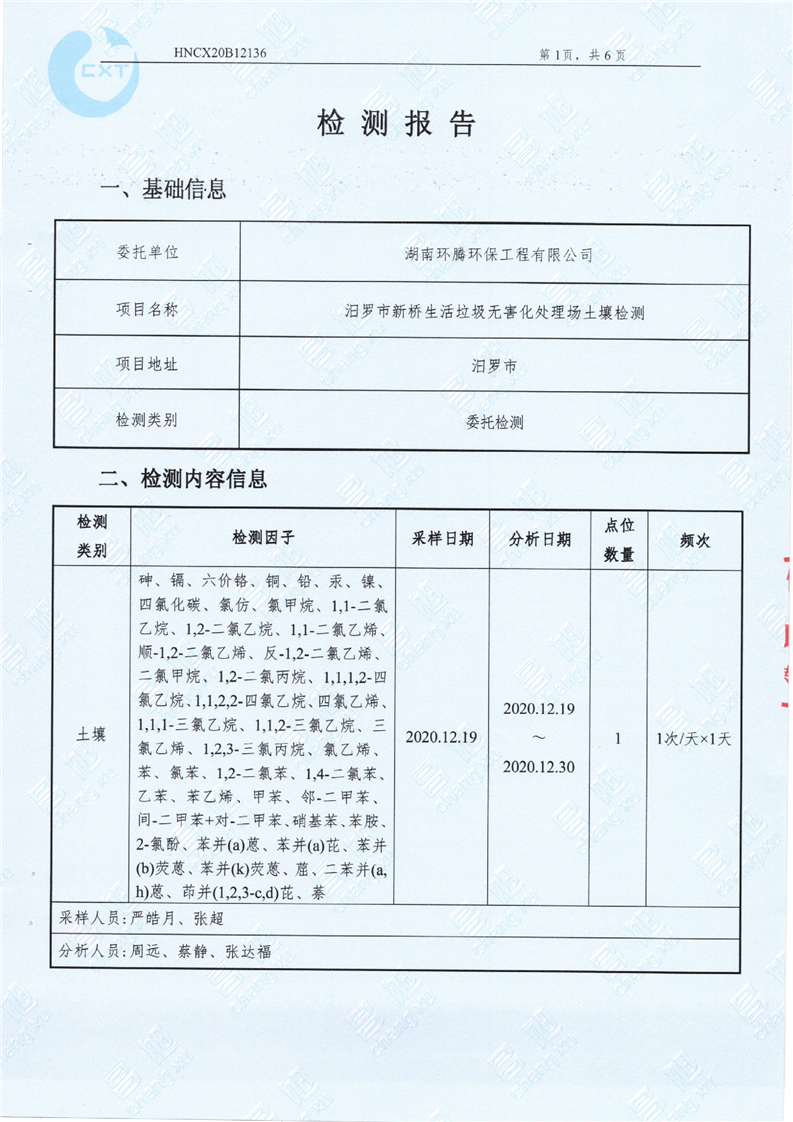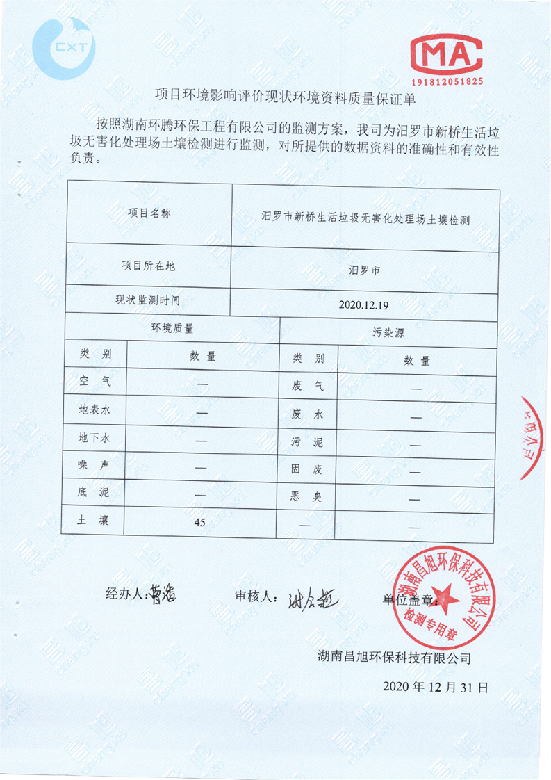 汨罗市新桥生活垃圾无害化处理场土壤监测