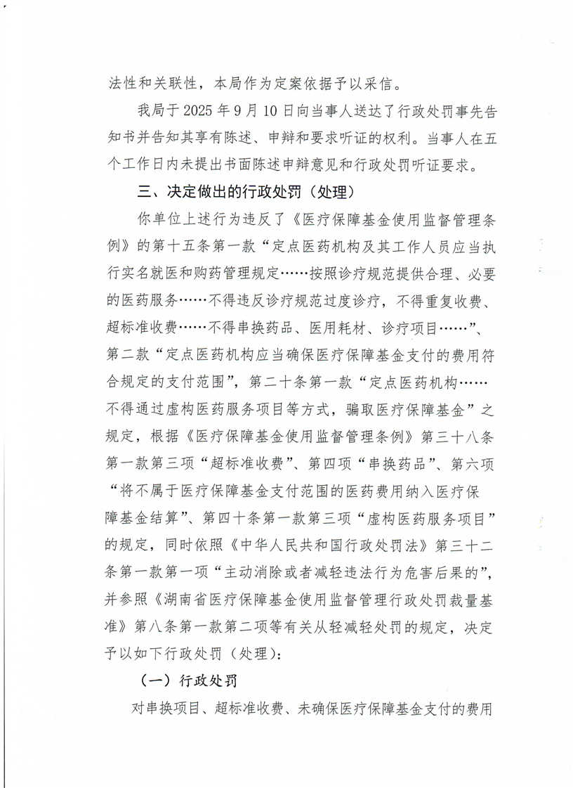 行政处罚(处理)决定书(汨医保处字〔2025〕第9号)
