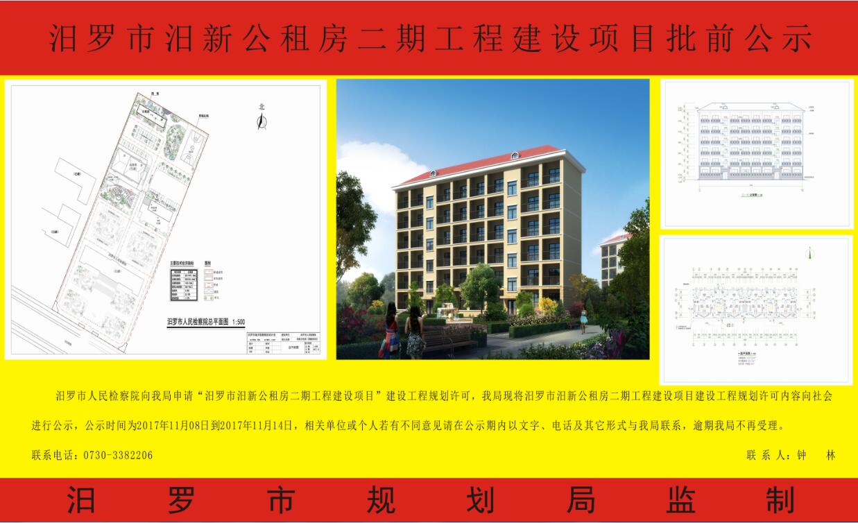 汨罗市汨新公租房二期工程建设项目批前公示