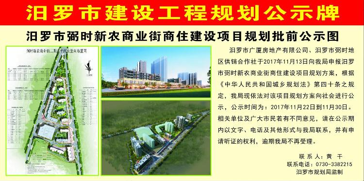汨罗市弼时新农商业街商住建设项目规划批前公示