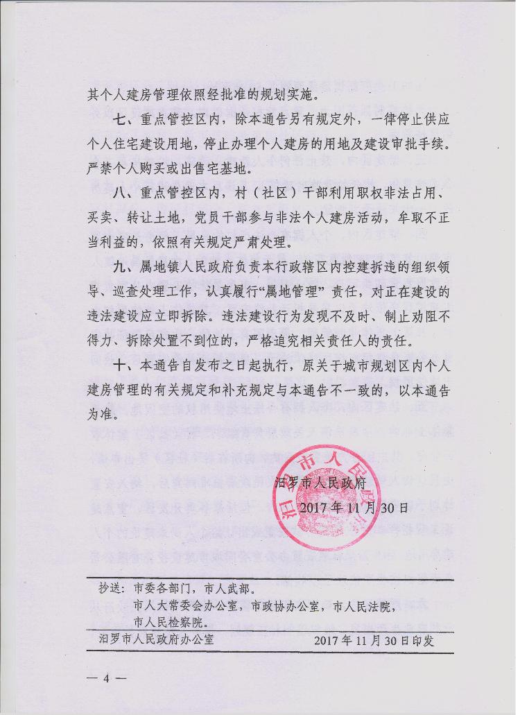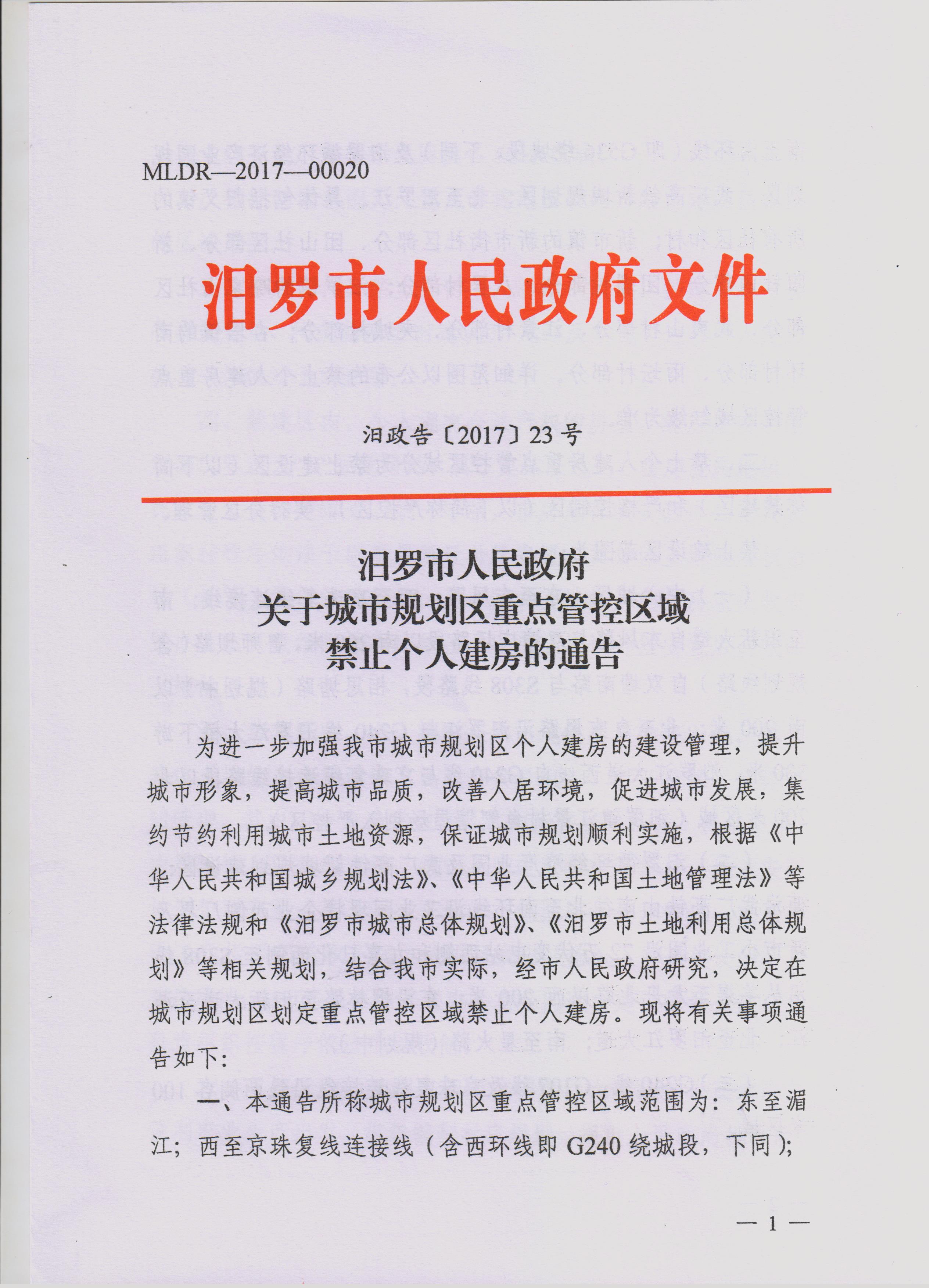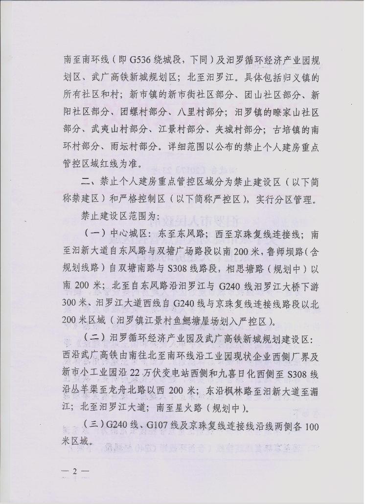 汨罗市人民政府关于城市规划区重点管控区域禁止个人建房的通告