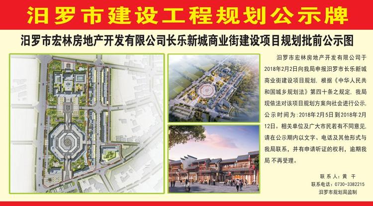 汨罗市宏林房地产开发有限公司长乐新城商业街建设项目规划批前公示