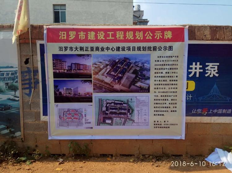 汨罗市大荆正亚商业中心建设项目规划批前公示图