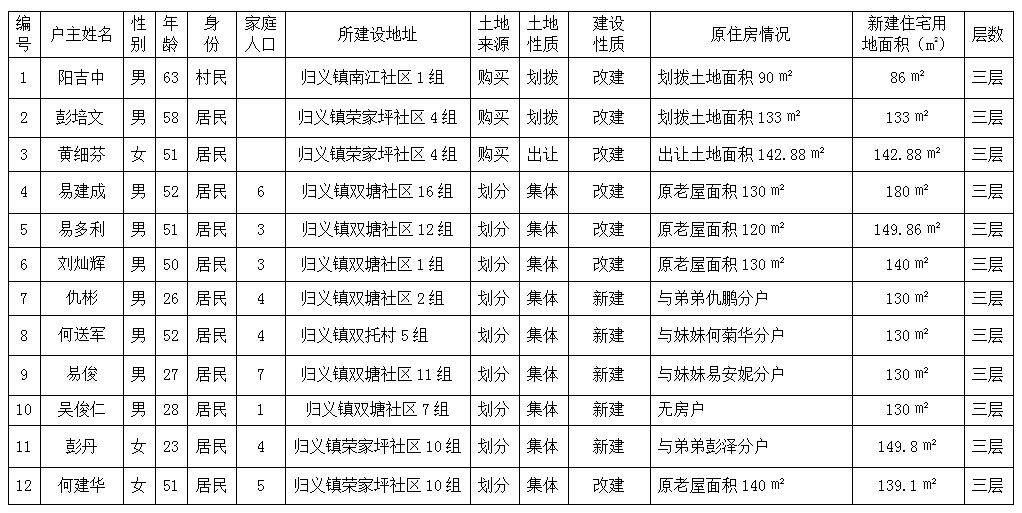 2016年城市规划区私人建房拟批公示名单(第二十五批)