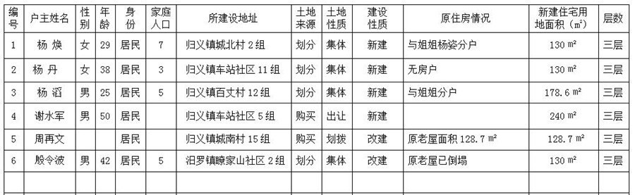 2016年城市规划区私人建房拟批公示名单(第二十九批)