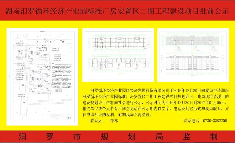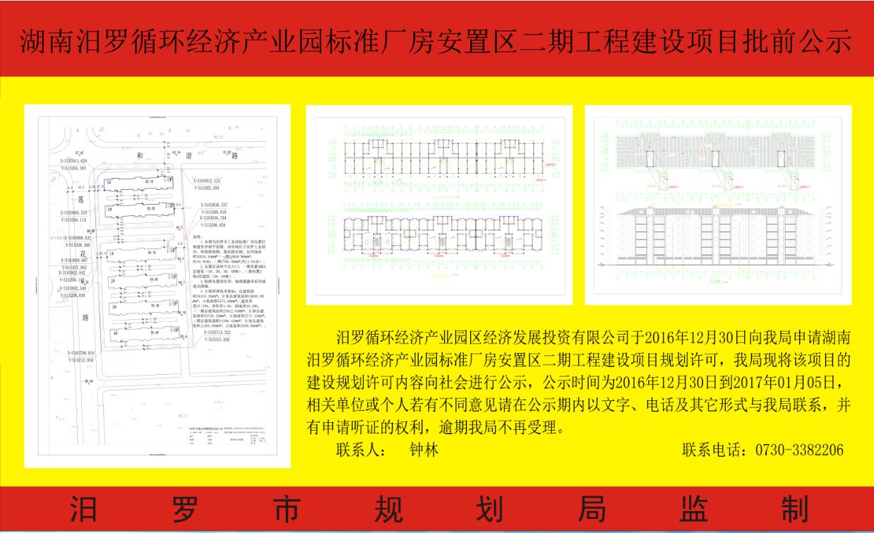 湖南汨罗循环经济产业园标准厂房安置区二期工程建设项目批前公示