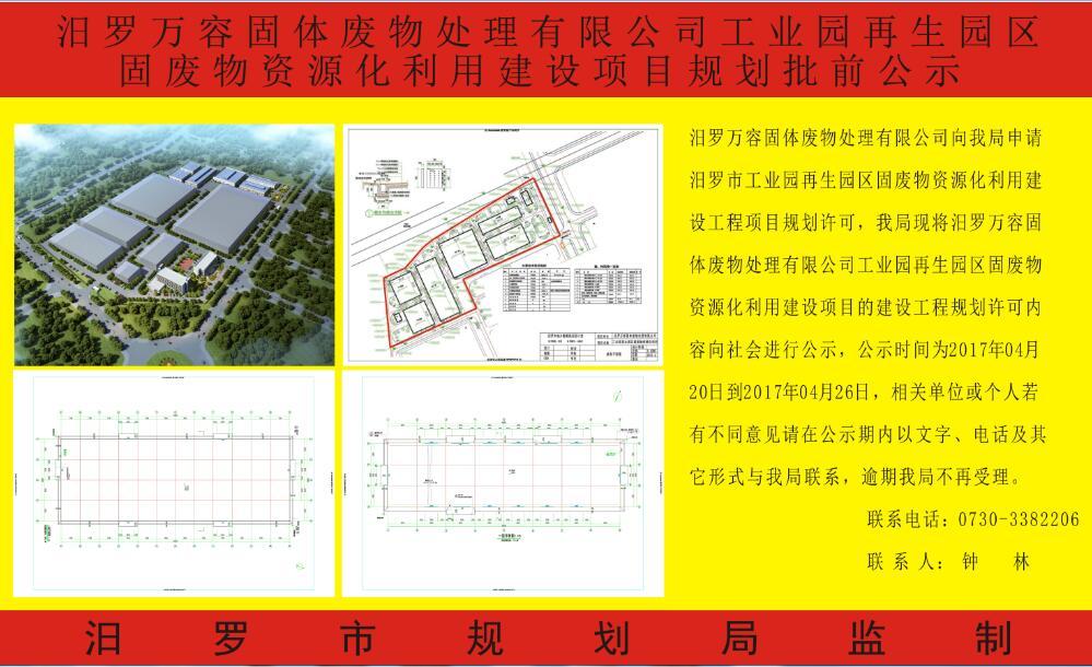 汨罗万容固体废物处理有限公司工业园再生园区固废物资源化利用建设项目规划批前公示