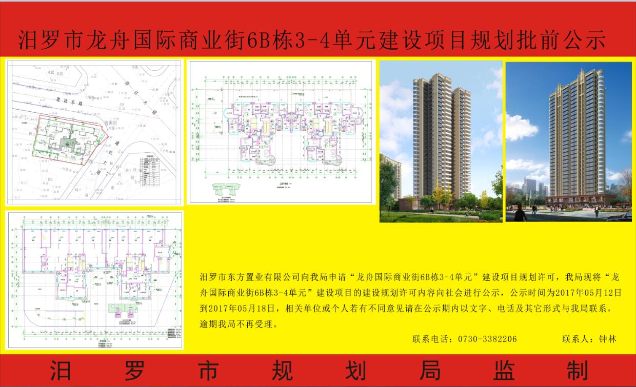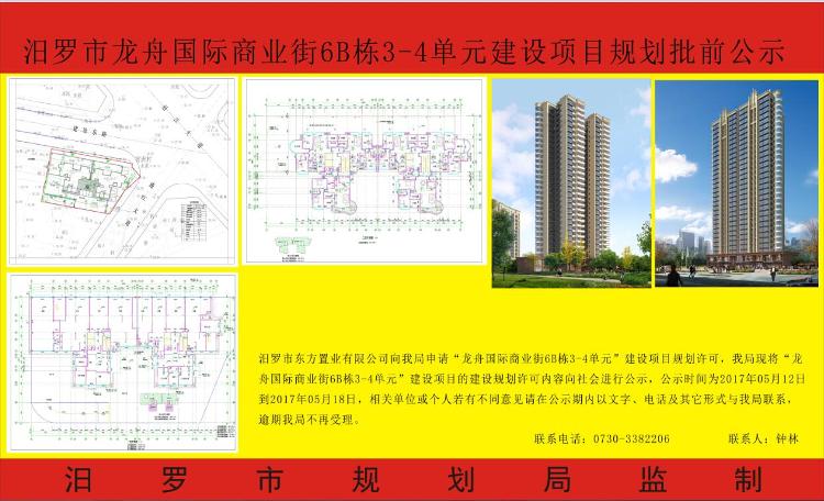汨罗市龙舟国际商业街6B栋3-4单元建设项目规划批前公示