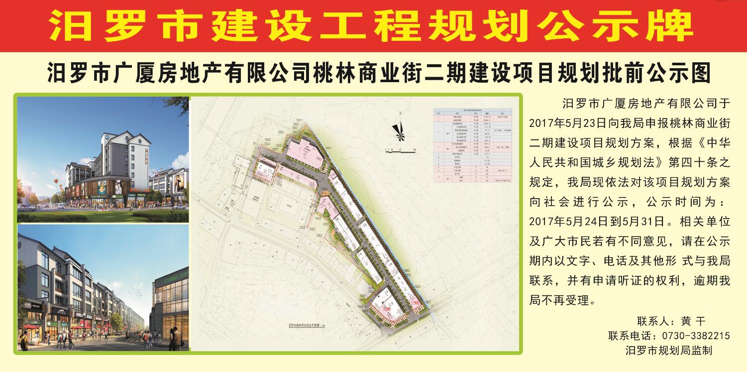 汨罗市广厦房地产有限公司桃林商业街二期建设项目规划批前公示