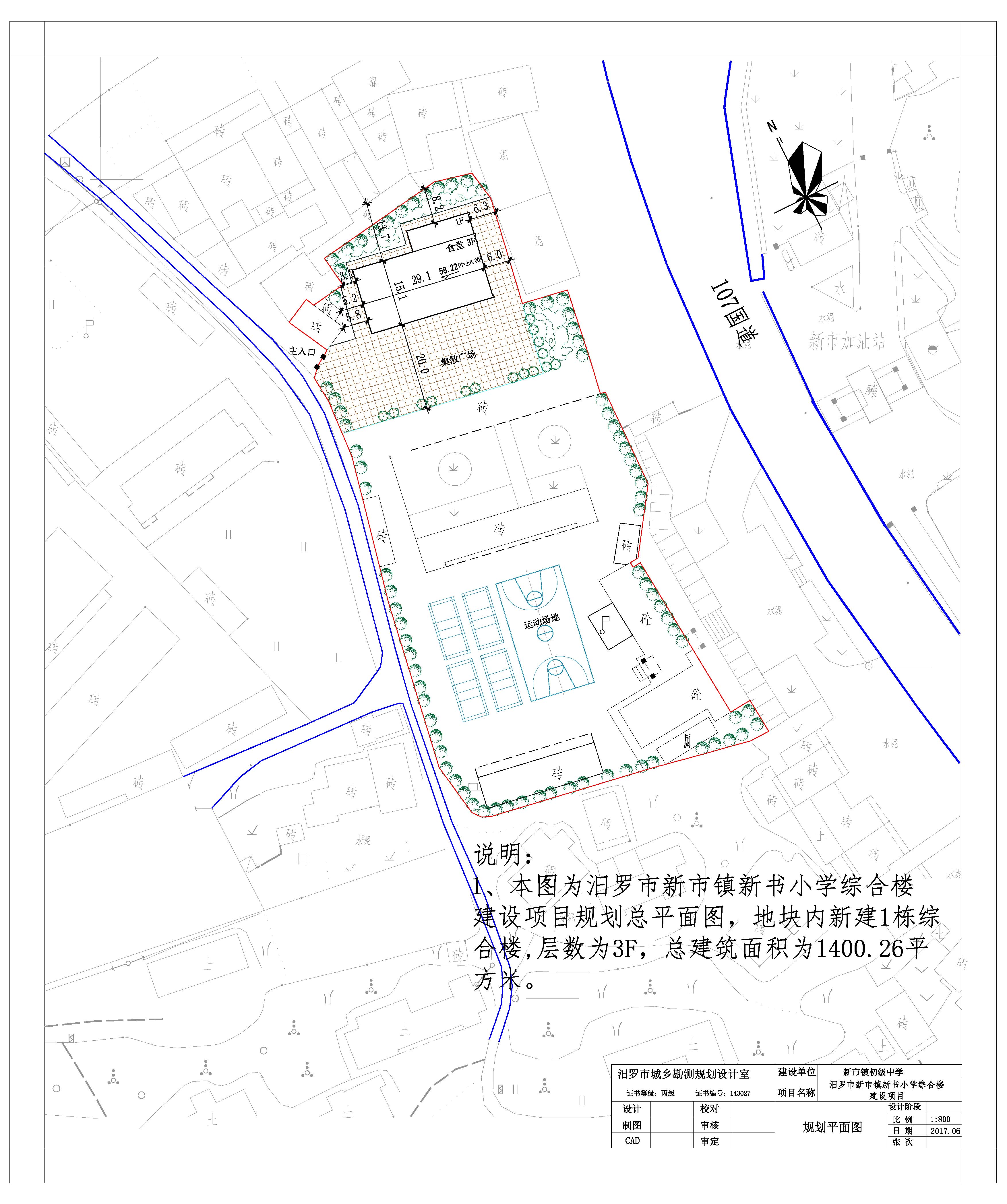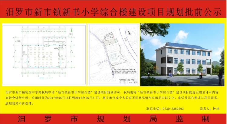 汨罗市新市镇新书小学综合楼建设项目规划批前公示