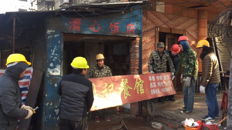 2月1日,对归义镇山塘社区劳动北路两侧7处占道棚屋进行了强制拆除,共拆除面积450平方米。