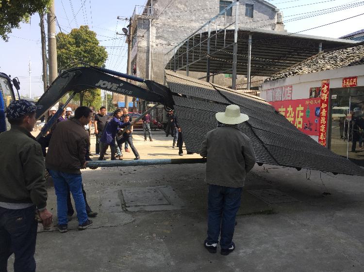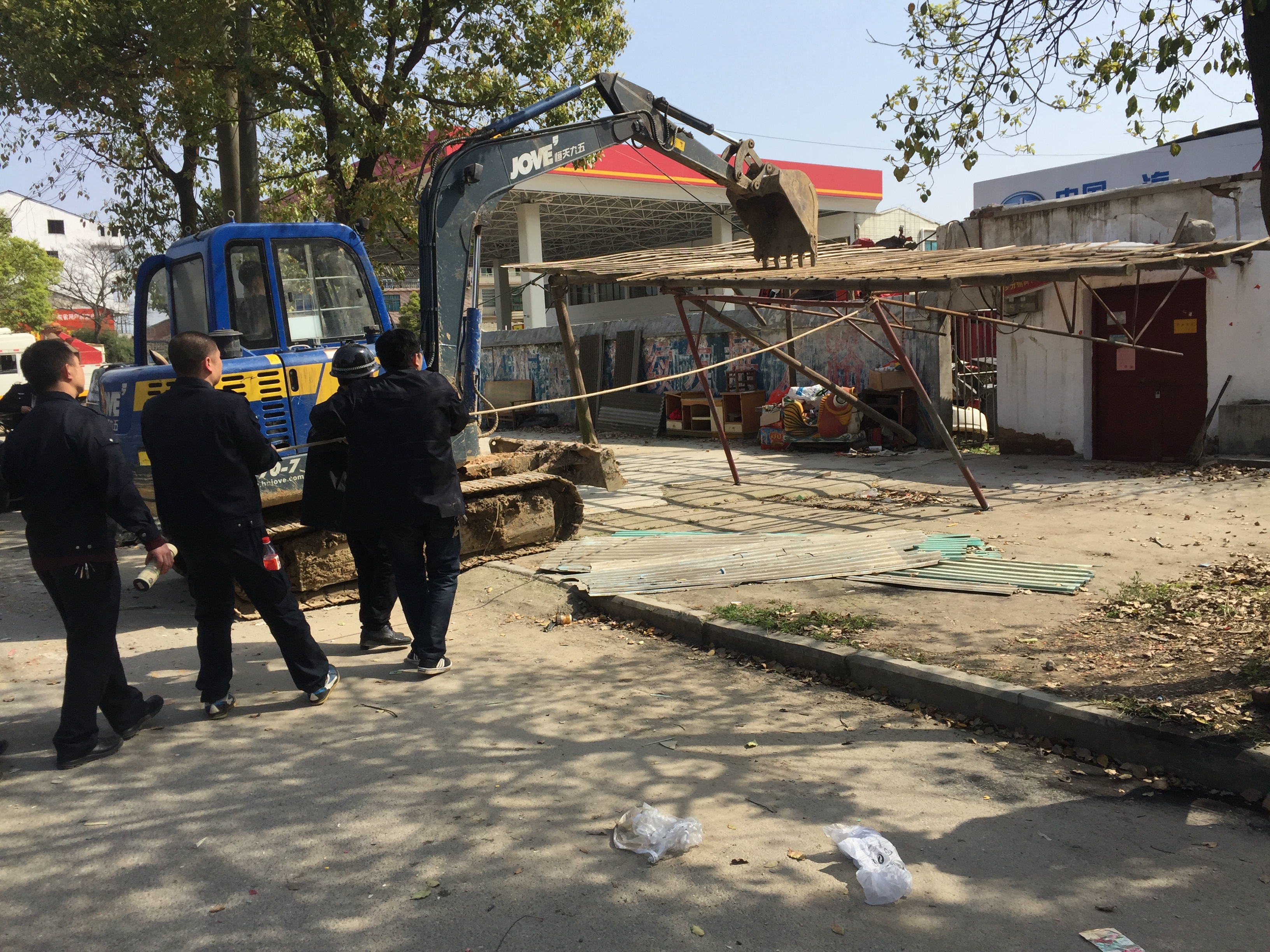 27日,在控建拆违办组织协调下,归义镇政府会同规划局、住建局(综合执法)、公安局等部门共计100余人开展联合执法行动,继续对S308线归义镇段乱搭乱建、乱堆乱放进行全面整治,27日共拆除占道违建棚屋14处,拆除面积约1000平方米。