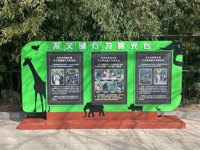 据北京动物园安全应急科科长柳浩博介绍,目前,北京动物园已实现全园智慧安防系统全覆盖。在公园应急管理指挥中心内设置“不文明管控专席”,工作人员通过监控探头不间断监测,一旦发现不文明游园行为,便可通过摄像头定位、通过应急广播进行劝阻,同时联动现场网格巡检人员快速处置。对于不文明行为情节严重的,公园还将记录《旅游不文明行为记录单》,并联合城管进行联合执法。对于列入黑名单的不文明行为人,市属公园将进行联合惩治,限制其进入园区参观游览。