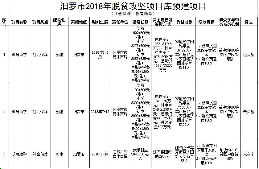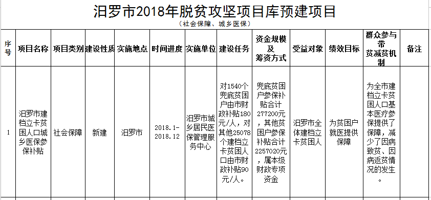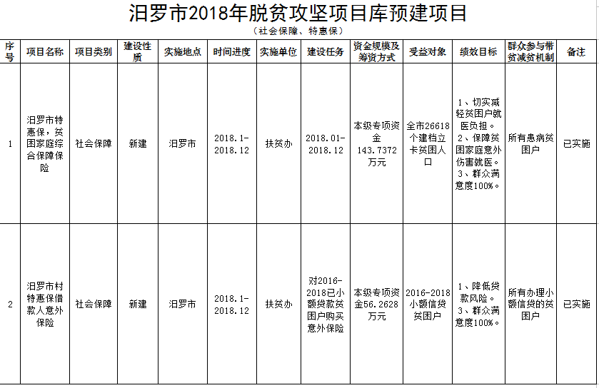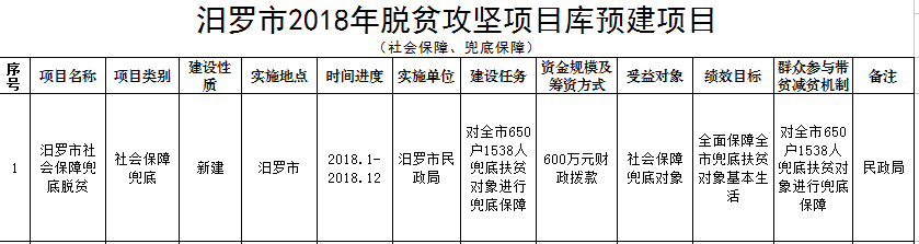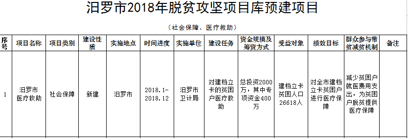 汨罗岁2018年脱贫攻坚项目库预建项目(社会保障建设)