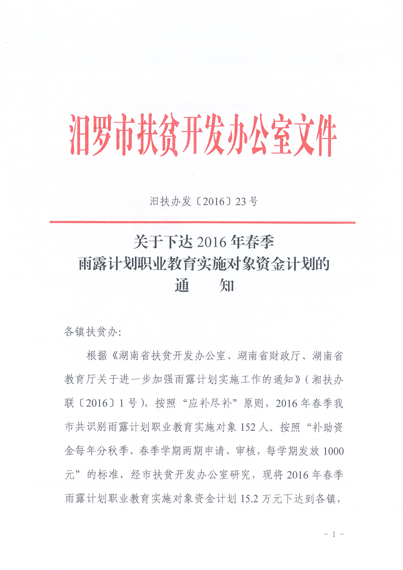 关于下达2016年春季雨露计划职业教育实施对象资金计划的通知2