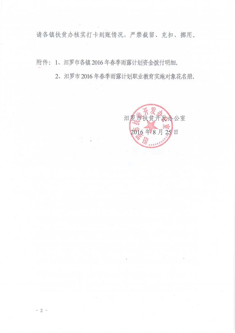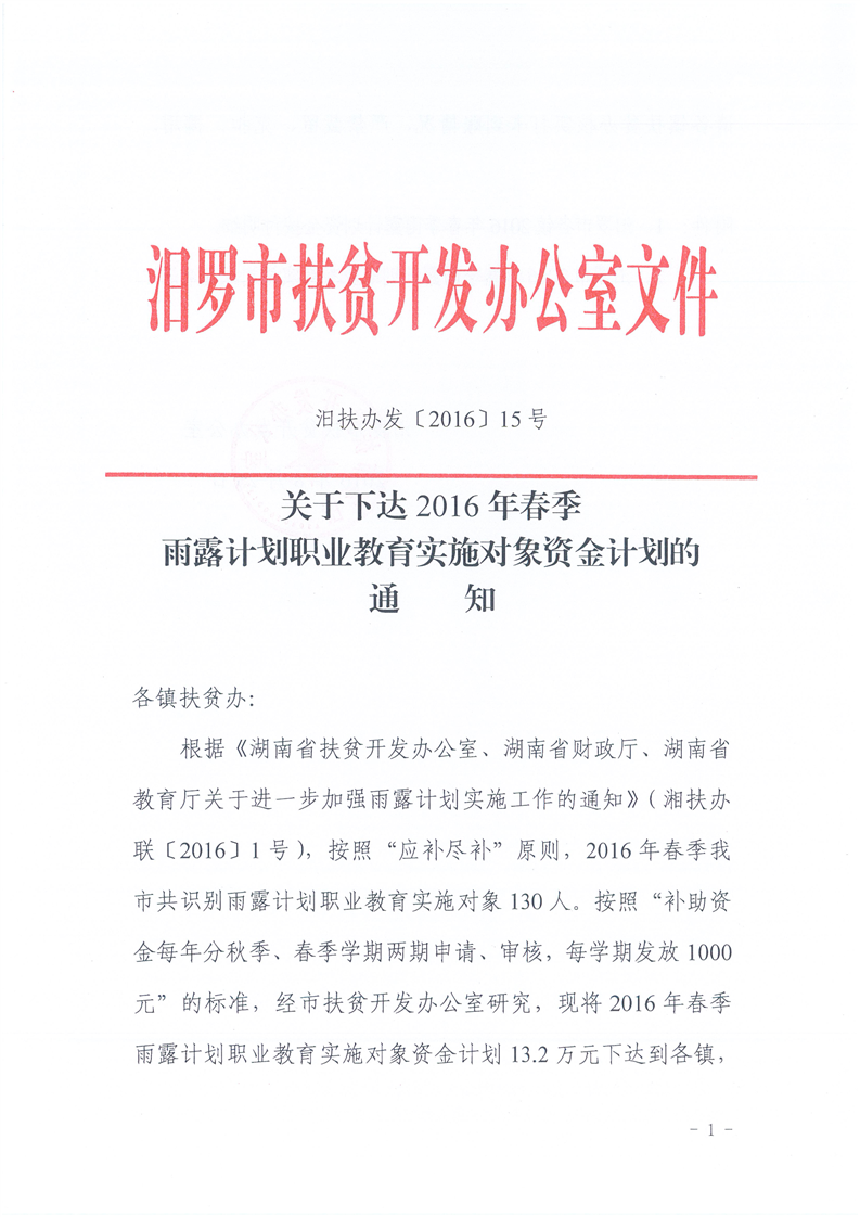关于下达2016年春季雨露计划职业教育实施对象资金计划的通知