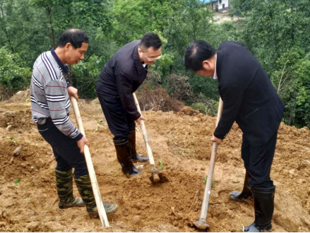 市委书记喻文在川山坪镇玉池山村栽种油茶苗