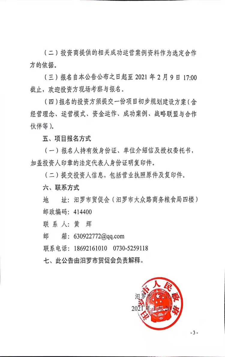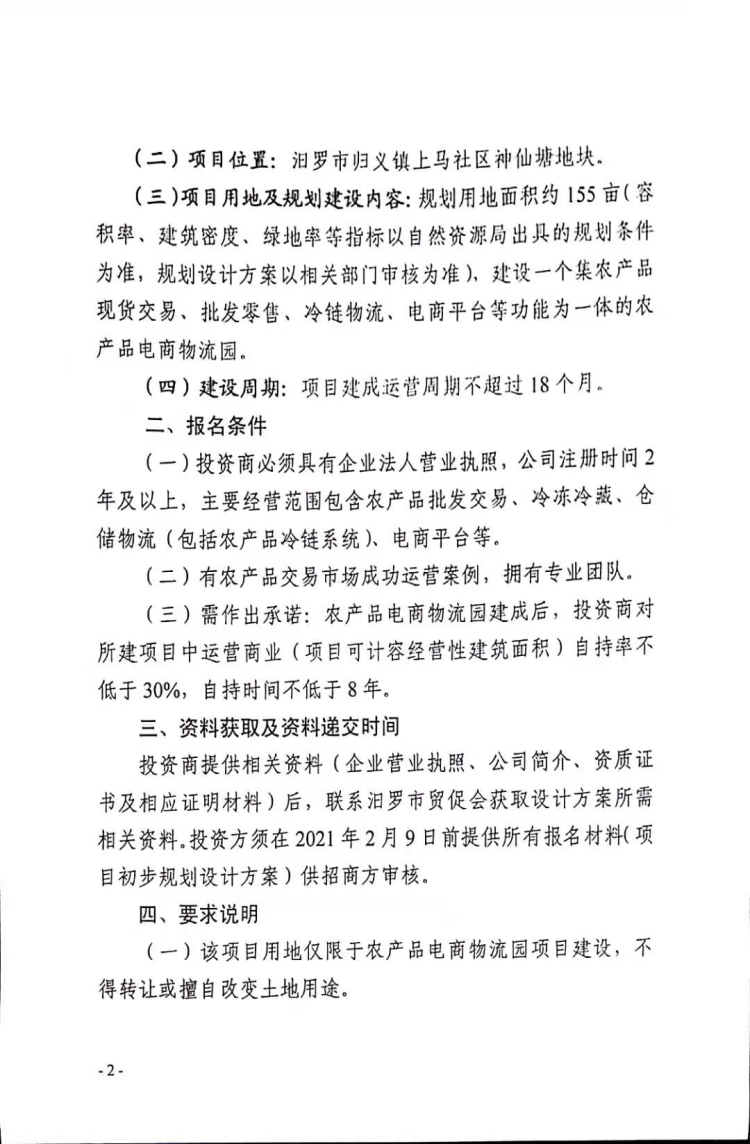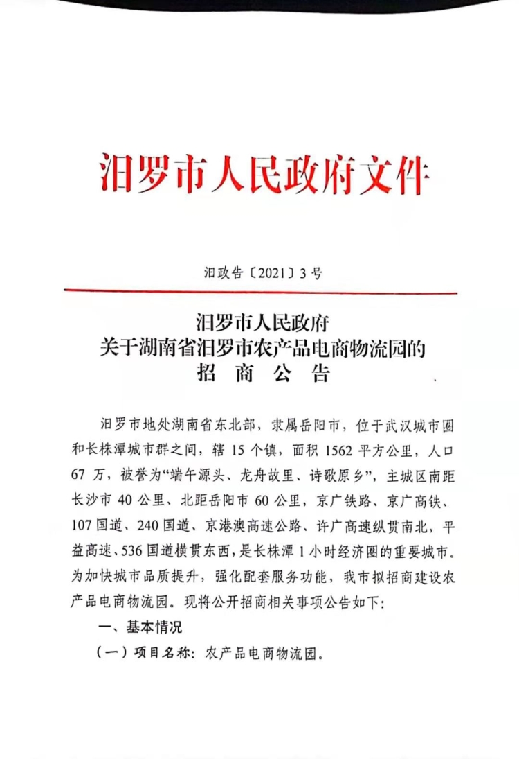 汨罗市人民政府关于湖南省汨罗市农产品电商物流园的招商公告