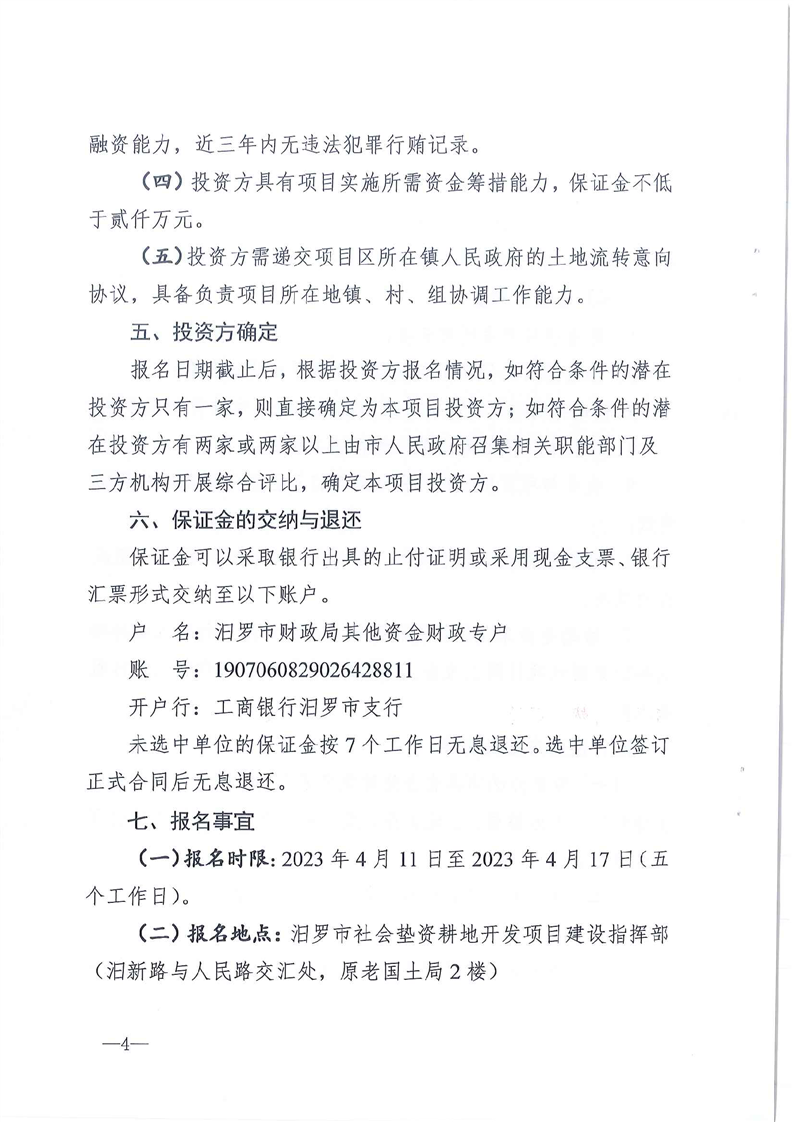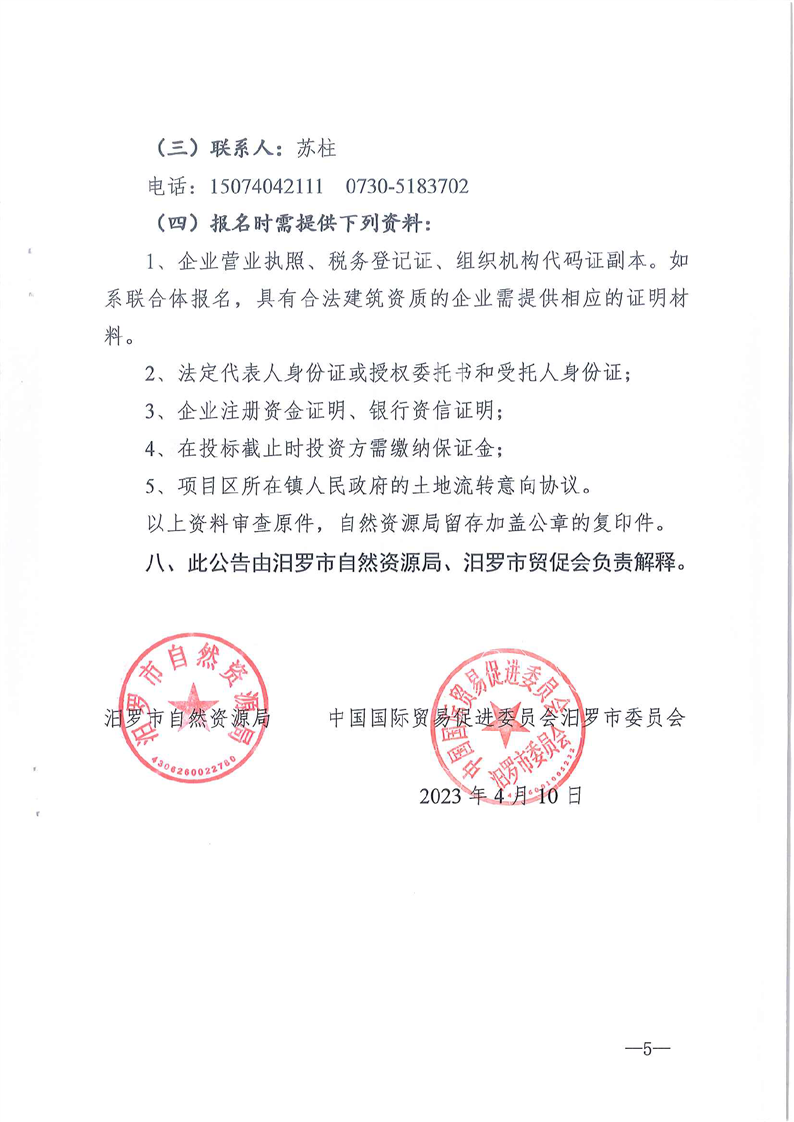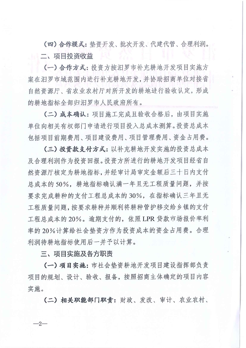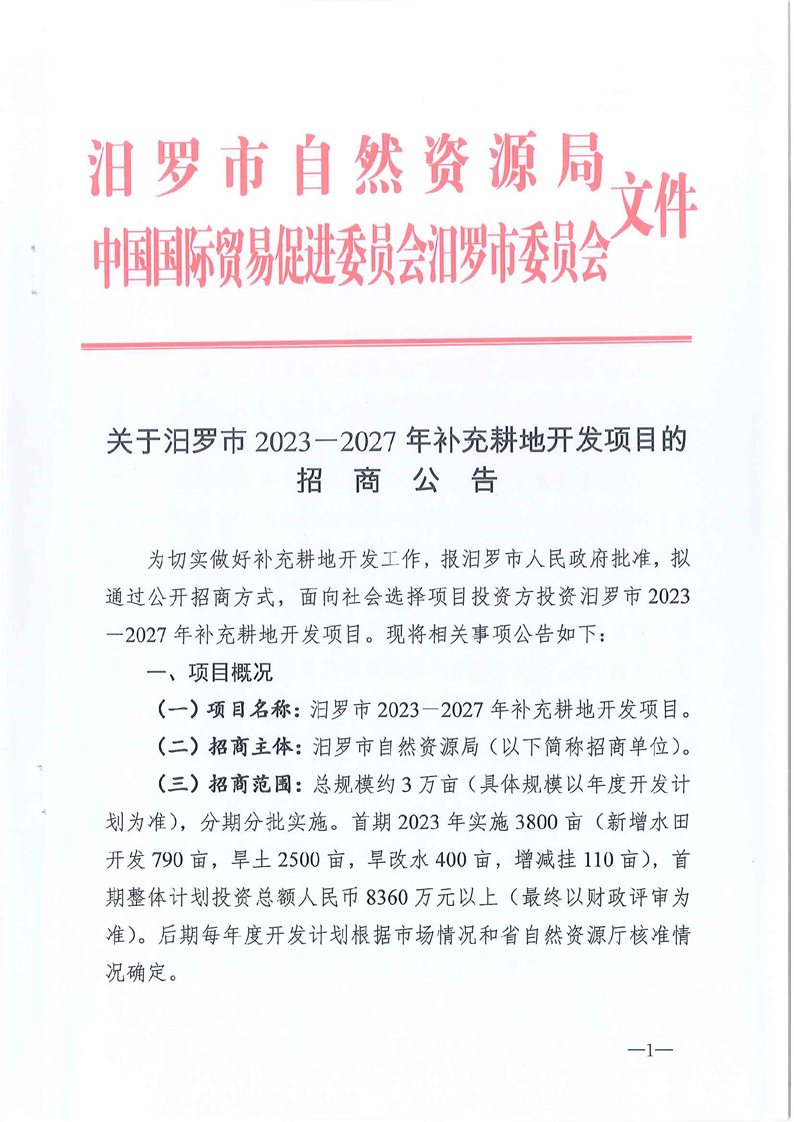 关于汨罗市2023-2027年补充耕地开发项目的招商公告