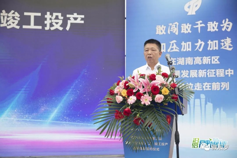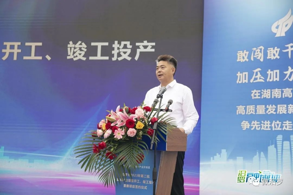 汨罗市委书记朱平波致辞,他代表汨罗市委、市人大、市政府、市政协,向各位领导、各位嘉宾的到来,表示诚挚的欢迎!向项目签约、开工、投产表示热烈的祝贺!向一直以来选择汨罗、参与汨罗建设、关心汨罗经济社会发展的企业家,表示衷心的感谢!他表示,汨罗将坚定打造“办事不求人、解难好找人、都是代言人”的营商环境,始终和企业想在一起、站在一起、干在一起,园区、部门上门服务企业,不惊扰企业,多支持企业,让企业家真切感受到“雪中送炭的温暖、雨中打伞的贴心”,为企业解决操心事、烦心事、揪心事,为企业营造最好的发展环境。