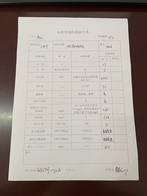 2021年4月26日汨罗市自来水公司水质每日检测报告