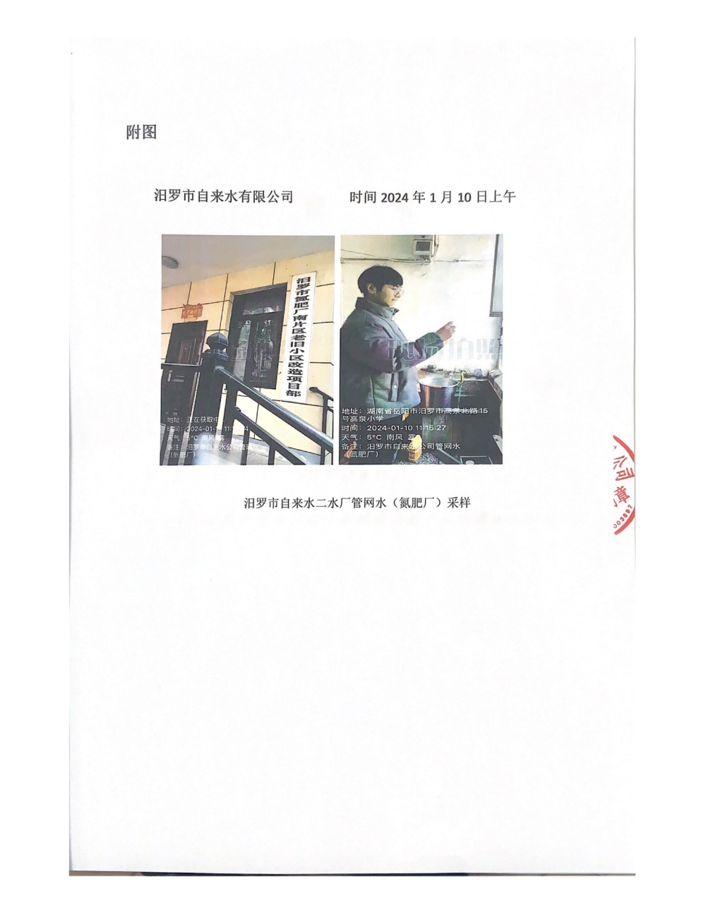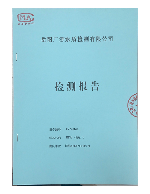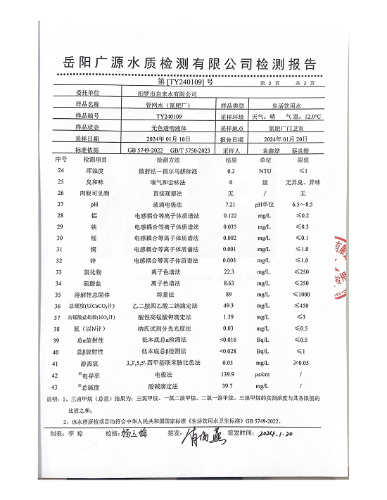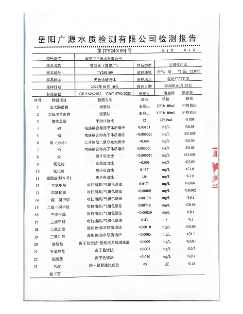 2024年1月份汨罗市自来水有限公司管网水(氮肥厂)质检月报表 (图)