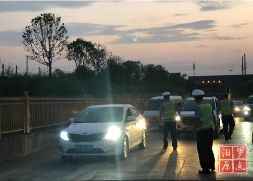 19:20,民警在汨罗江大道铁路桥东设卡。据了解,汨罗江大道由于行驶条件良好,车辆速度较快,同时又是城区郊区交界的重要通道,车流量大,民警特意选取这条稽查难度大的道路开展行动。19:30,民警对该道路上由西往东行驶的车辆一一开始检查。随着车辆慢慢排成长龙,民警敏锐地发现远处桥下有大约三四辆车开始掉头行驶。