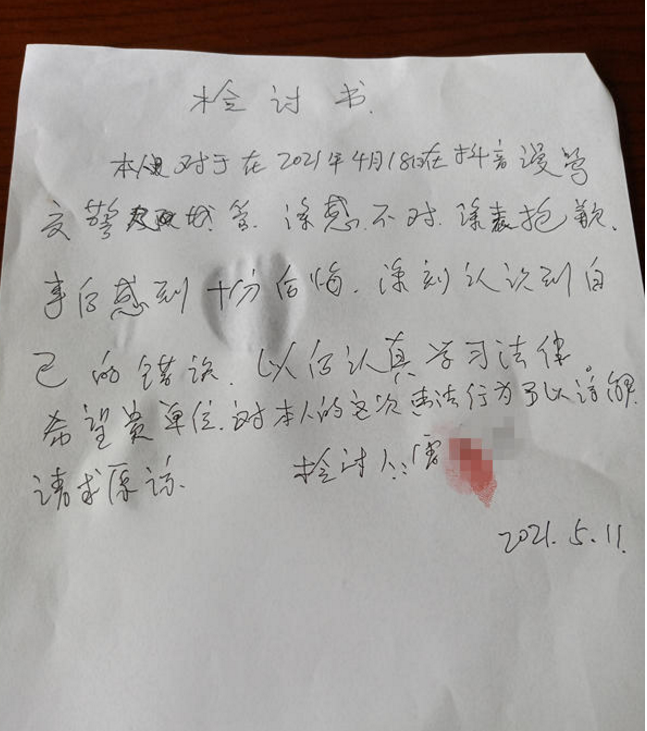 汨罗融媒体讯(记者 李亚)将车停放在人行道上被贴罚单,驾驶人雷某某心生怨恨在抖音发表辱骂交警和城管的视频。5月11日,雷某某意识到自己的错误,到公安机关投案自首,被依法行政拘留5日。