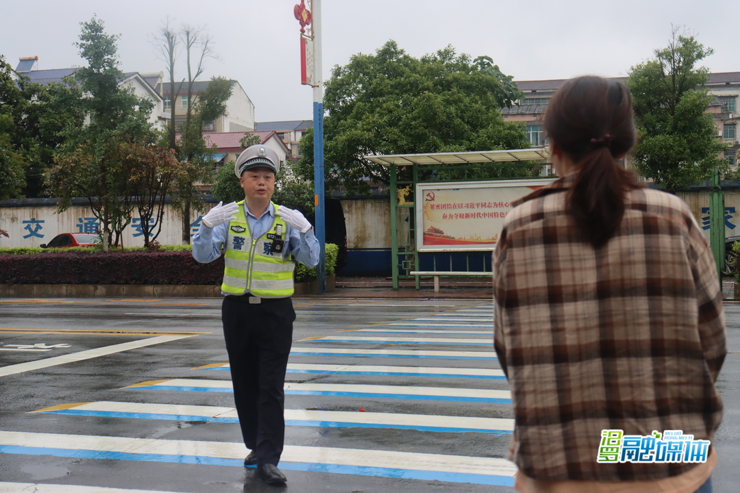 5月23日下午3时许,在罗城大道斑马线上,执勤中的吴红权发现了一辆白色小轿车没有礼让行人,特意将车辆驾驶人拦下,并真人