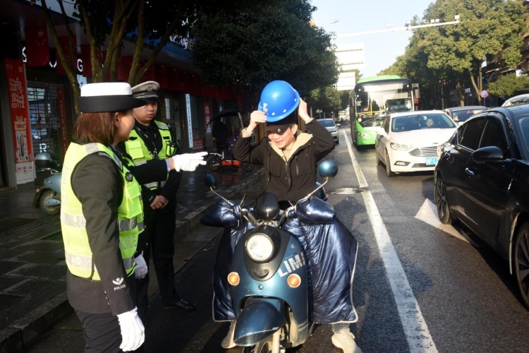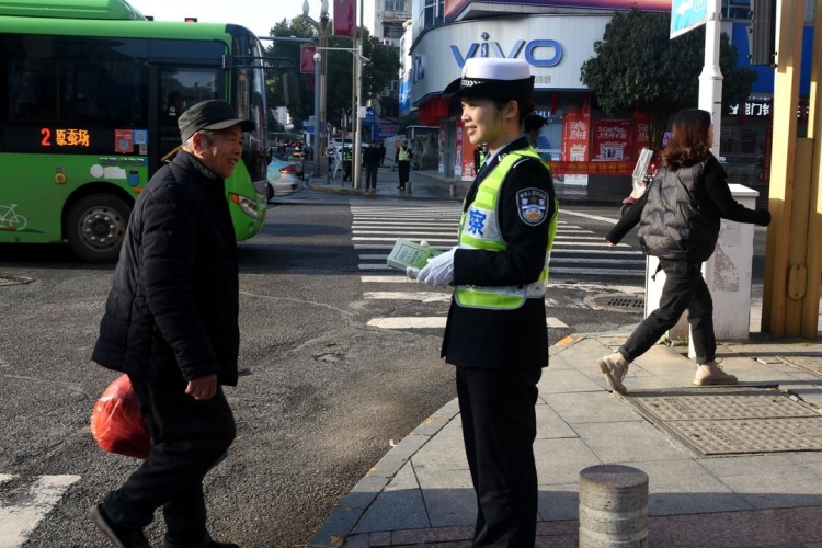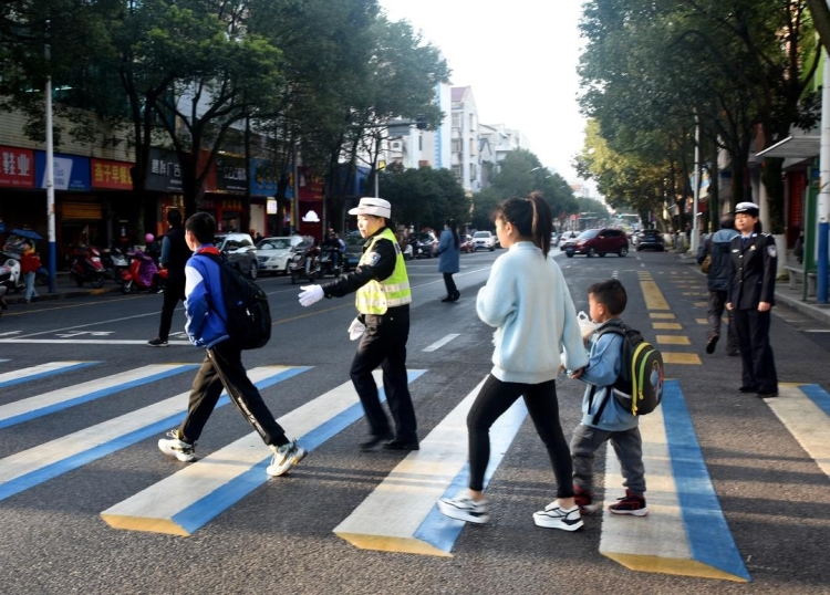 早上8时,在高泉小学护学岗,"警花"们亲切护送小朋友们通过马路。在高泉路与建设路交叉路口,大家则摆放好宣传展板,为市民发放交通安全知识宣传册。路边,更多人对未佩戴安全头盔的摩托车、电动自行车骑乘人员进行劝导,展现柔性执法的力量。