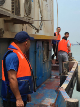 徐主任带队,责令该船卸载河沙,船只解体上岸,现场监督