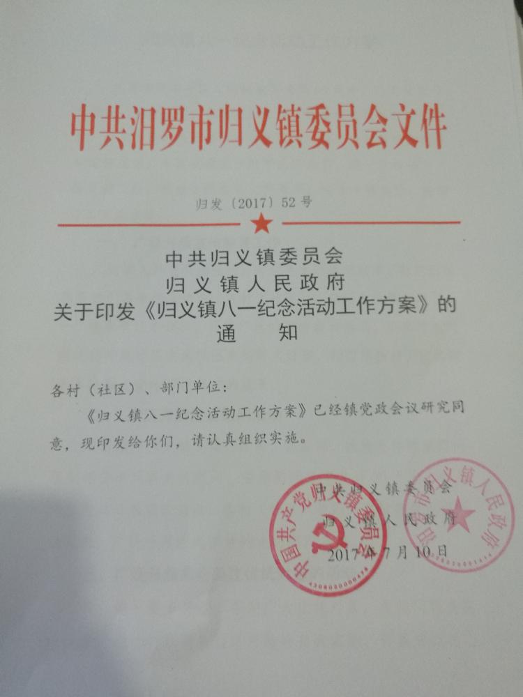为隆重庆祝中国人民解放军建军90周年,扎实做好节日期间的拥军优属、拥政爱民工作,弘扬我党我军的优良传统,激发军民的民族精神和时代精神,进一步增强双拥意识和国防观念,丰富双拥工作的形式和内容,进一步推动归义镇双拥工作。根据上级有关文件要求,结合本镇实际,特制订本实施方案。