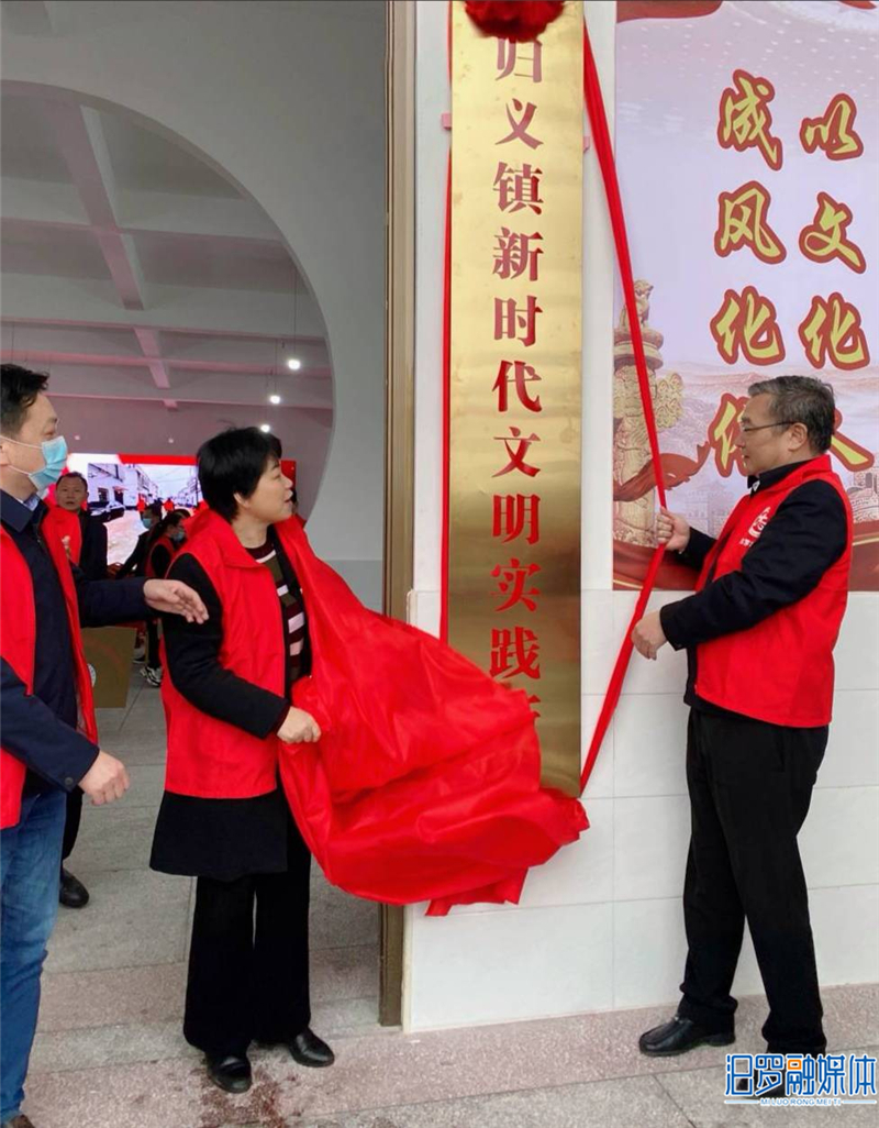 市人大常委会主任闵秀明(右一)、市委常委、宣传部长王敏求(右二)为归义镇新时代文明实践所揭牌