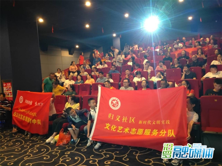 当晚,来自归义社区的志愿者们也在维护好现场秩序、做好入场登记的同时,积极向现场观众宣传爱国主义思想,获得现场观众的一致点赞。