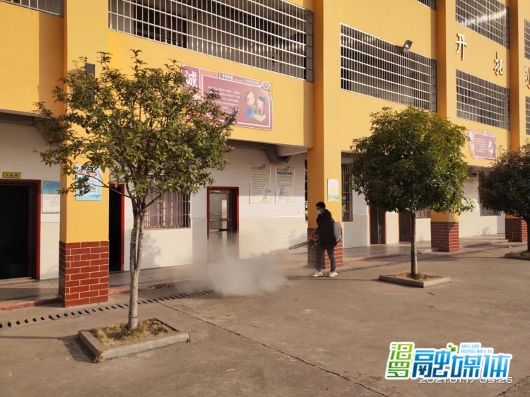 汨罗融媒体通讯(通讯员:毛琪芹、柳杨喆、易金皇)1月17日,归义镇双塘社区志愿队在辖区学校开展“创建安全校园·我参与、我先行!”志愿活动,义务为校园进行防疫消毒,为师生保驾护航。