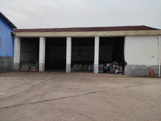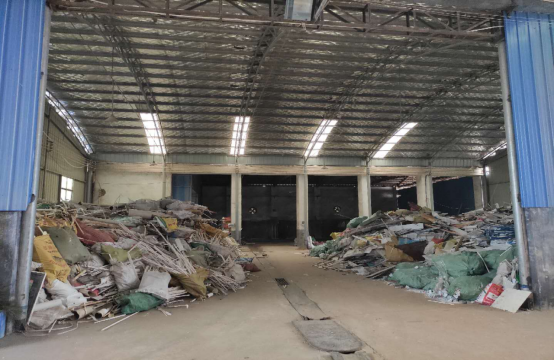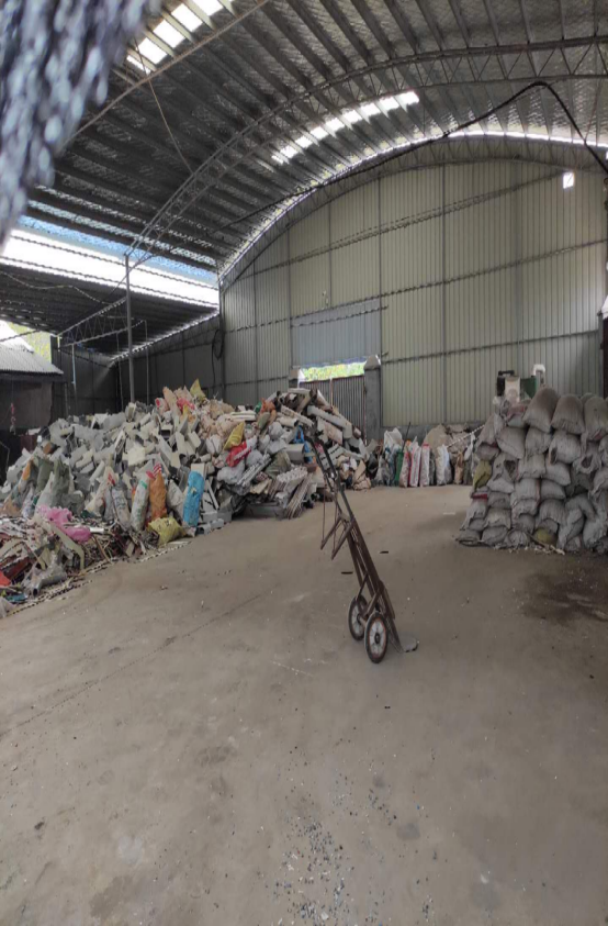西侧的厂房内有大量废旧PVC、ABS废旧塑料堆积