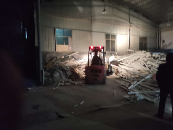 出动叉车、铲车、托运车等设备连夜对该厂进行设备清理、材料清理、场地清理