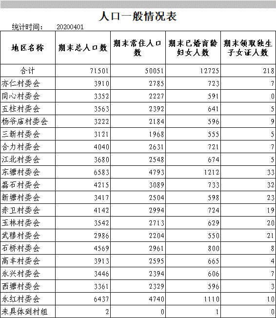 桃林寺镇2020年度人口一般情况表