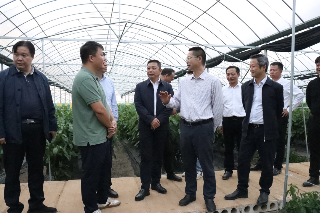 省农业农村厅副厅长马艳青(前排右二)实地考察汨罗镇江景村高档红椒基地