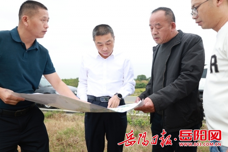 汨罗市委书记朱平波(左二)正在了解桃林寺镇赤卫村村庄规划情况