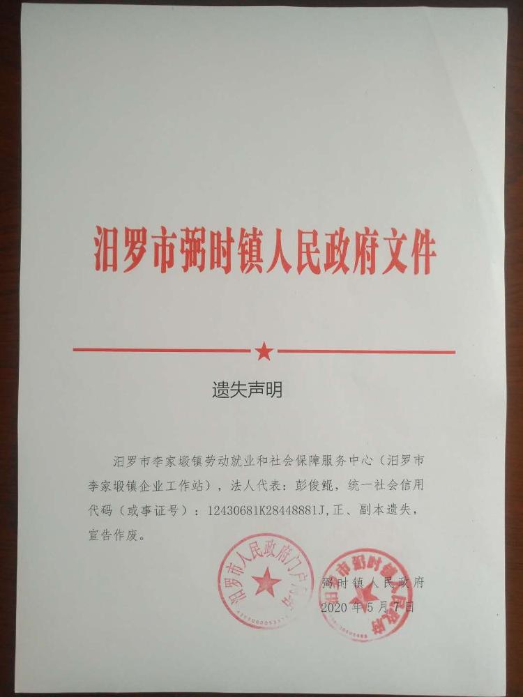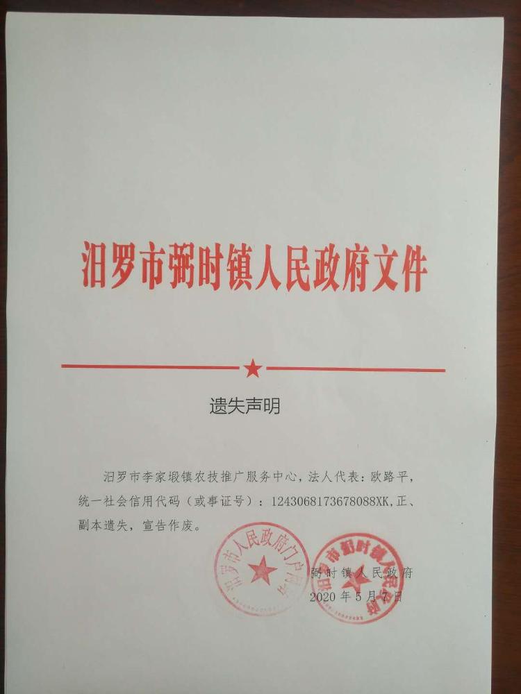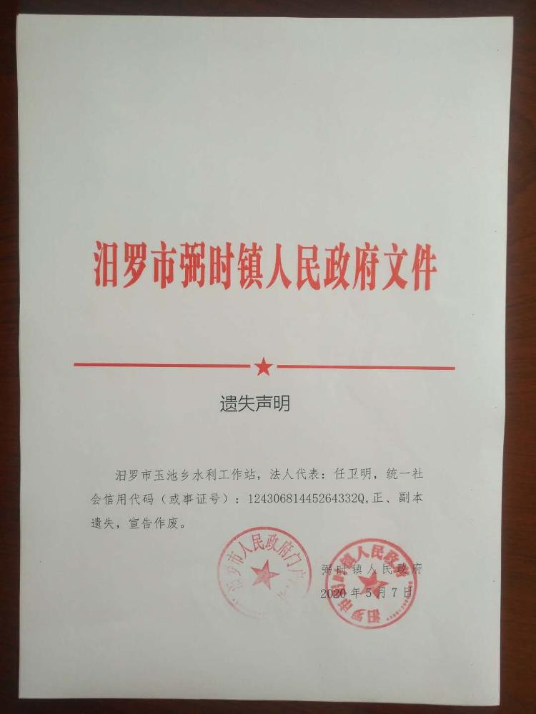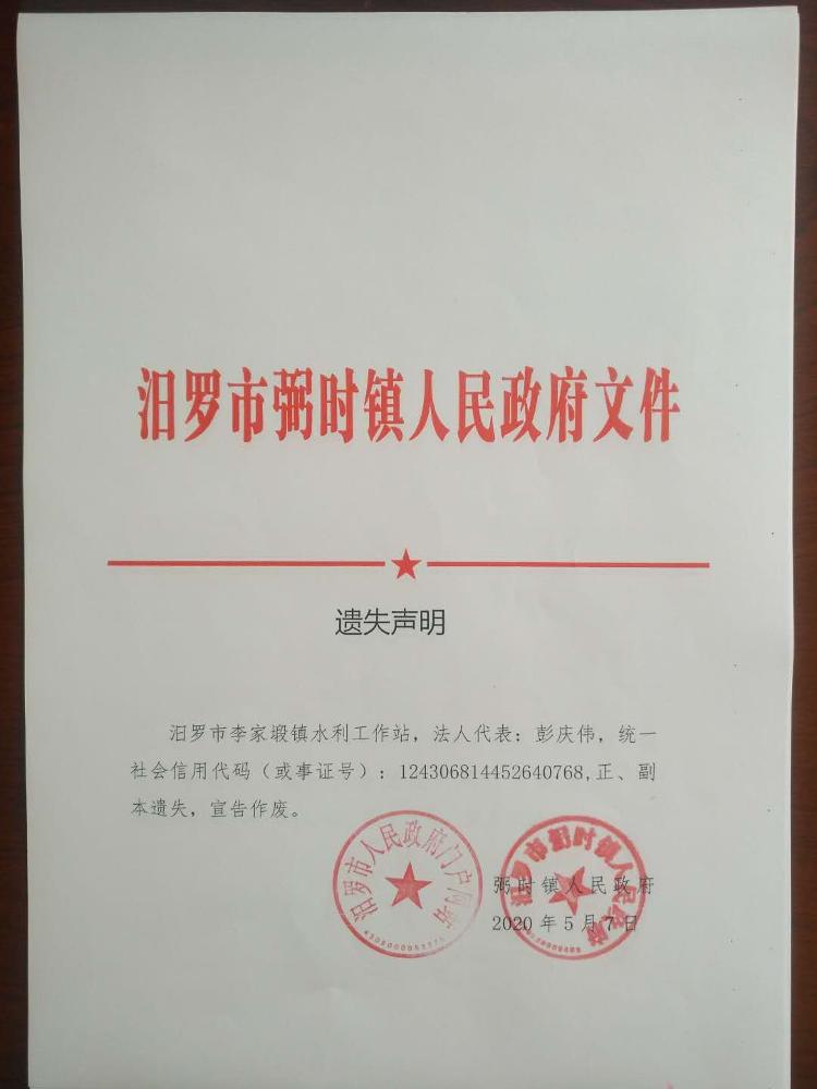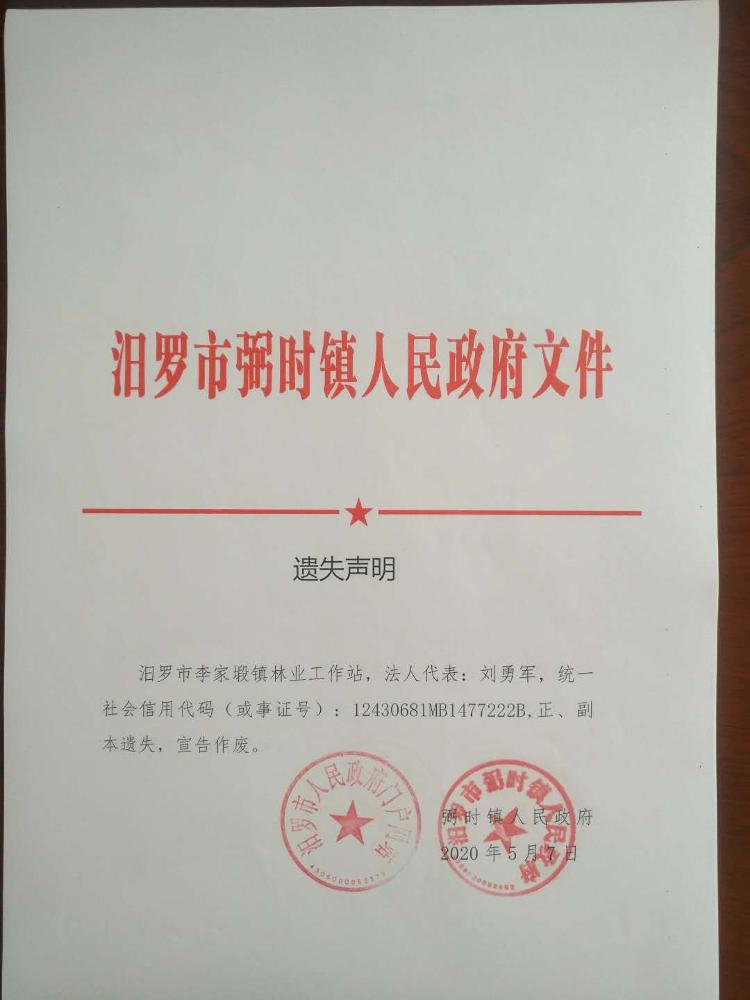 关于汨罗市原李家塅镇、玉池乡事业单位法人证书遗失声明